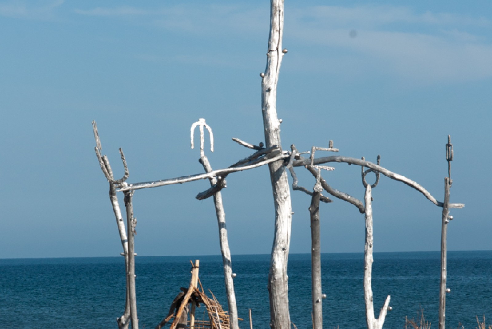 Pochi semplici – solo all’apparenza – gesti che hanno originato l’idea di abitare. Da Vitruvio a Filarete, da Marc-Antoine Laugier a Adolf Loos fino a Le Corbusier ci si è costantemente interrogati sull’importanza di definire l’unità minima abitativa in grado di soddisfare uno dei bisogni primari dell’uomo: rifugiarsi. La capanna è stata la risposta a questo interrogativo non solo come momento estetico, progettuale e realizzativo ma anche come messa in forma delle capacità evolutive dell’uomo. In una storia invasa da forme e dimensioni architettoniche sterminate la capanna non ha ceduto un centimetro alla modernità tornando a modello della più rapida possibilità di mettersi al riparo, fosse anche dal Sole. Per questo motivo, attraversando il lungomare maremmano si incontrano spesso architetture d’occasione costruite con i tronchi di legno recuperati nei paraggi; tante se ne incontrano che è diventata negli anni una vera e propria tradizione.